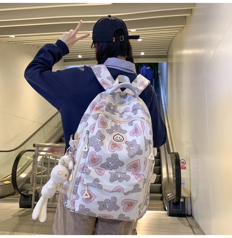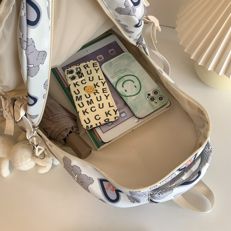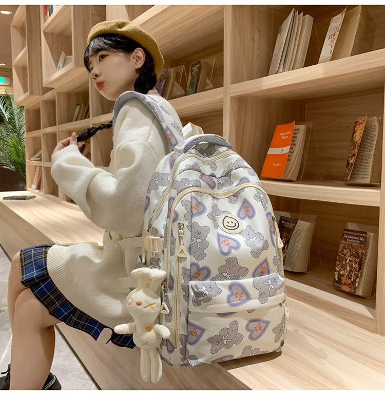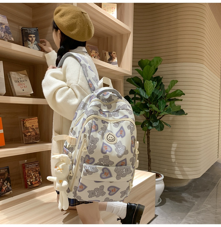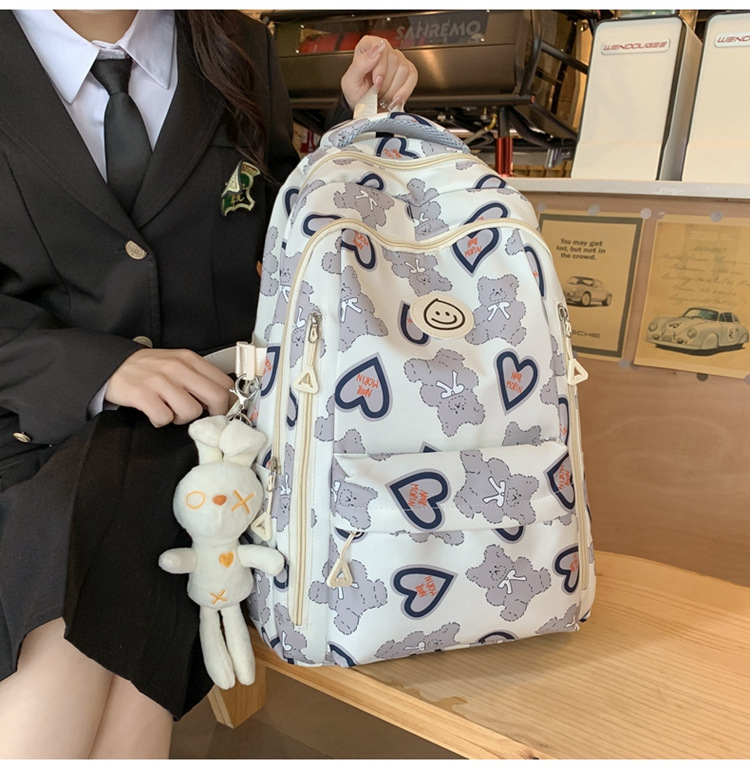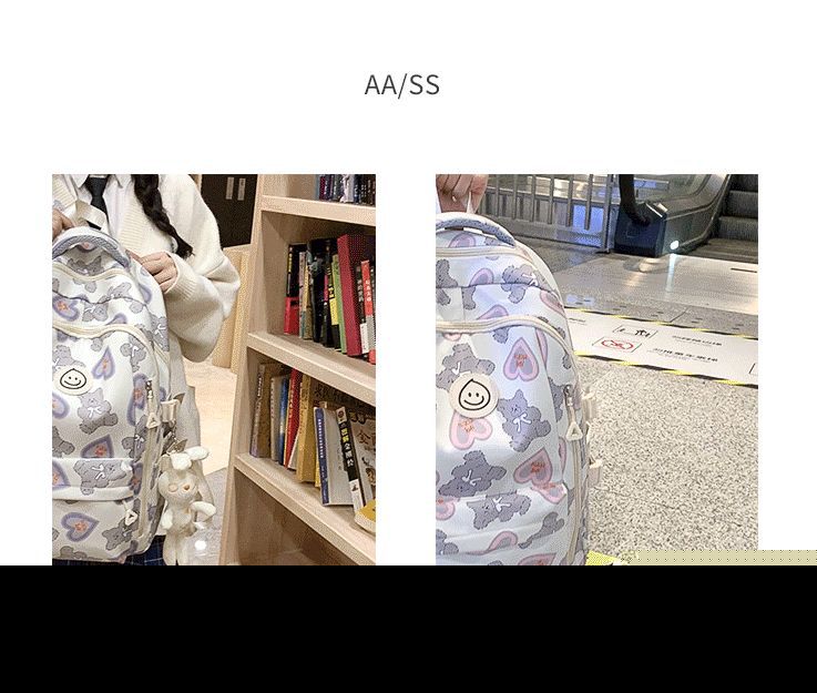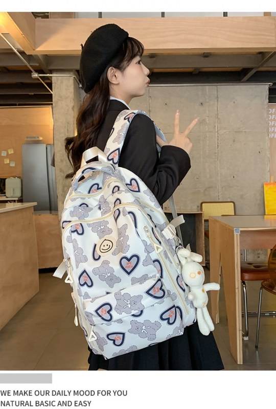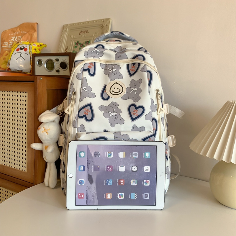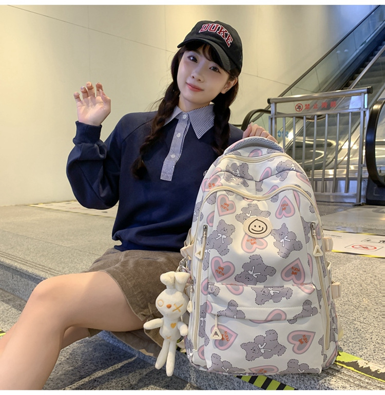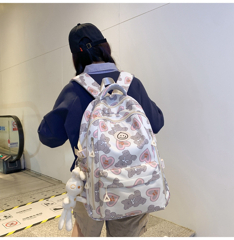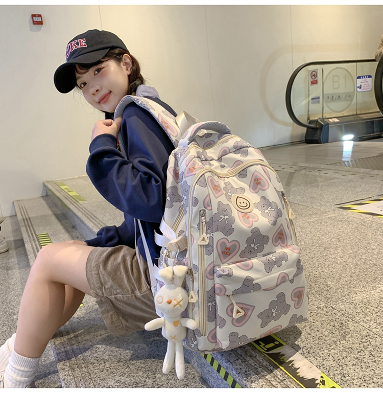 • New Love バックパック韓国スタイルのトレンディな大容量学生スクールバッグカジュアルプリント屋外バックパック
