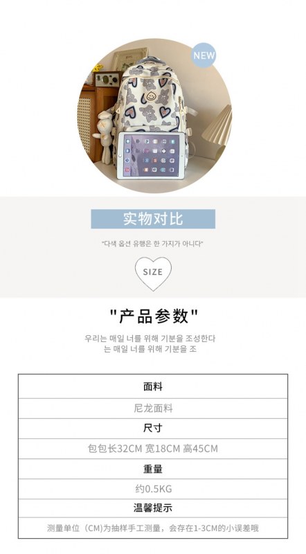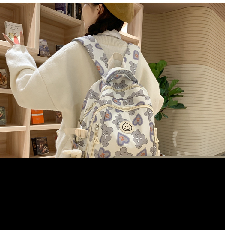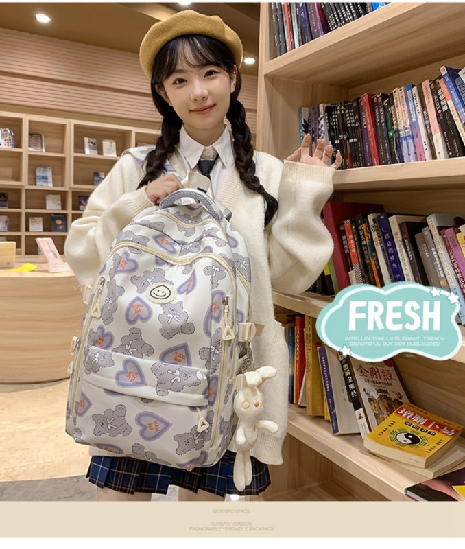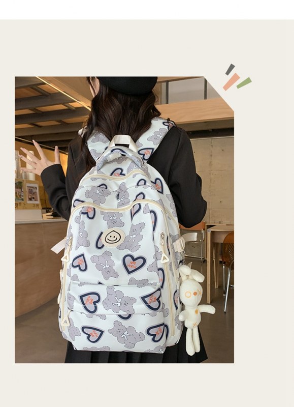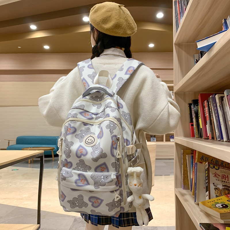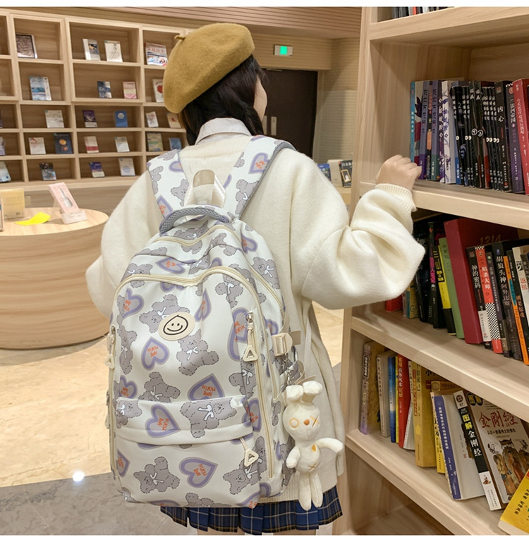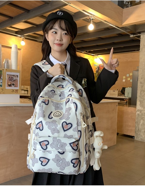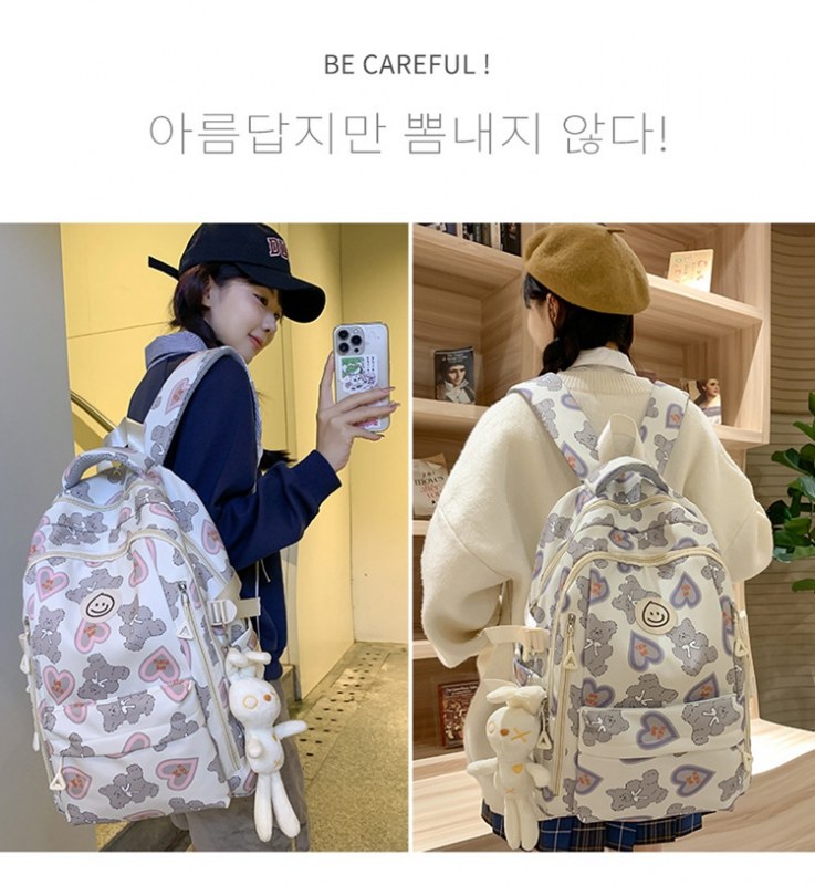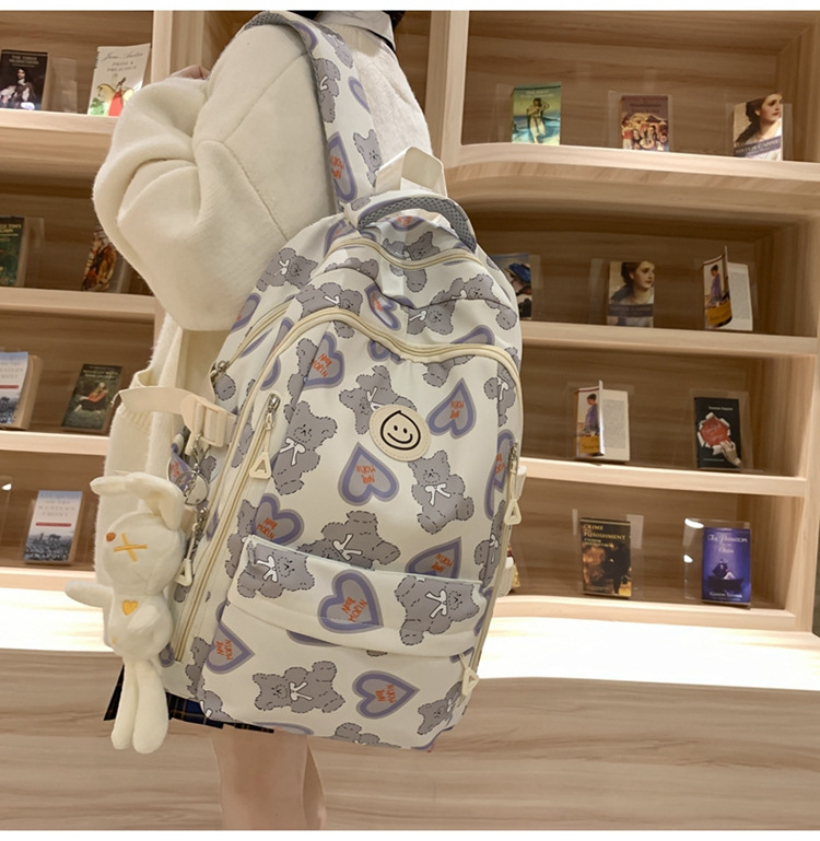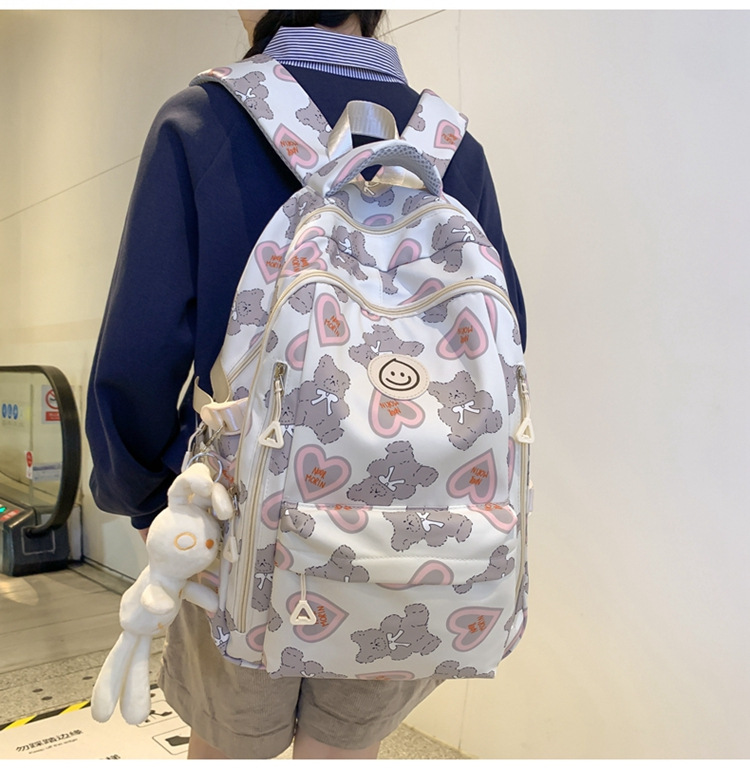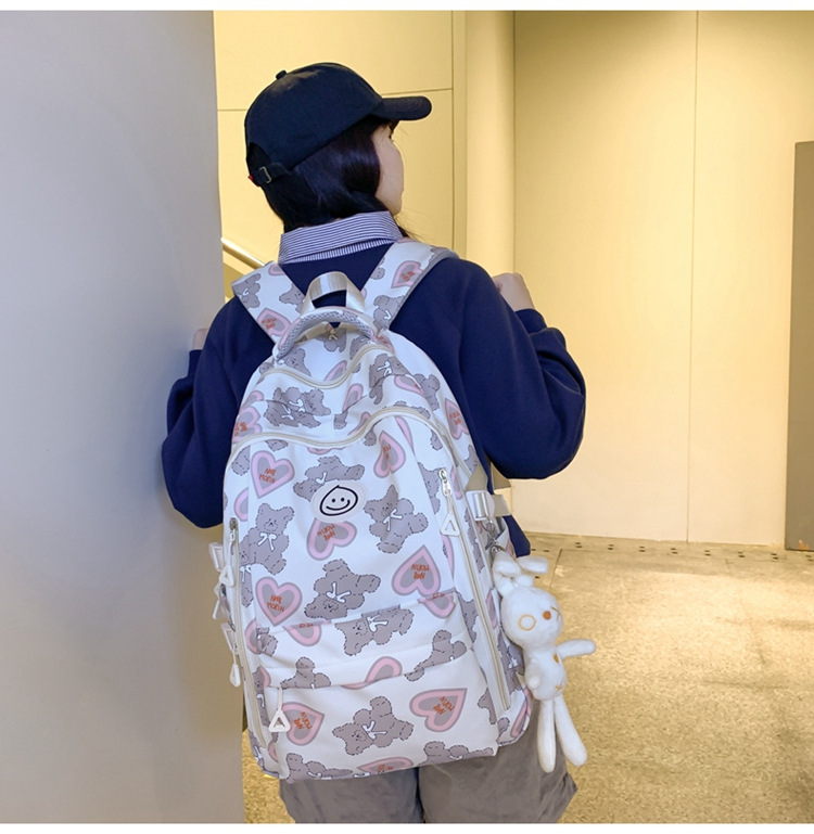 • New Love バックパック韓国スタイルのトレンディな大容量学生スクールバッグカジュアルプリント屋外バックパック