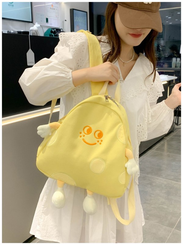 • 新しいかわいいチーズキャンバスバックパック女性漫画キャンパスバックパック日本ソフト女子学生スクールバッグ