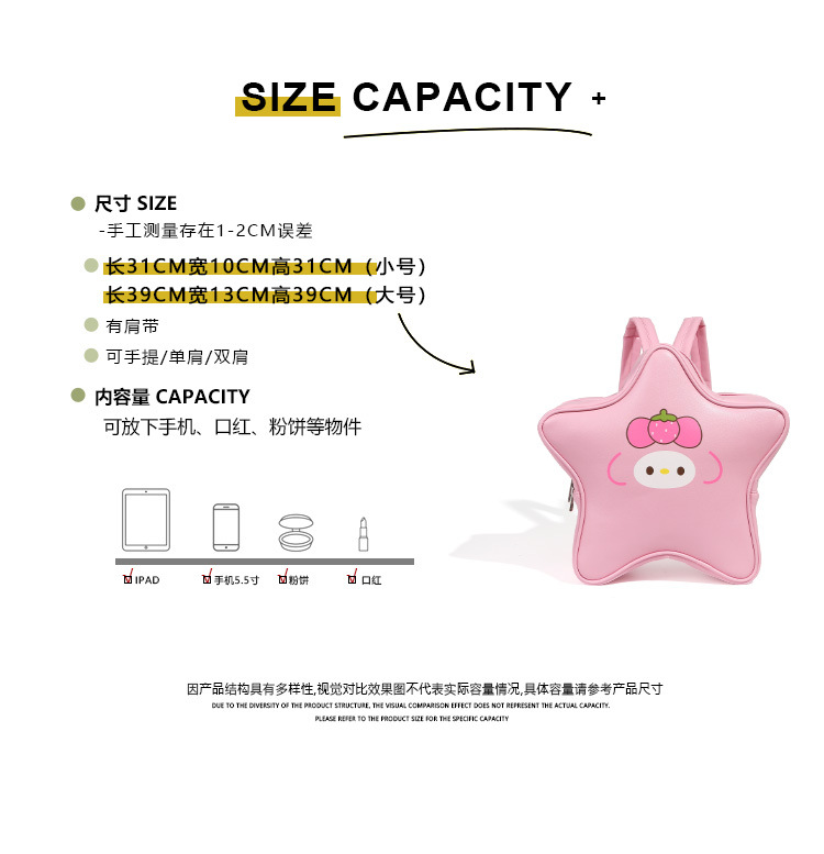 • かわいいメロディースターバックパックソフトかわいい甘い女の子インニッチ多用途高見え学生大容量スクールバッグ
