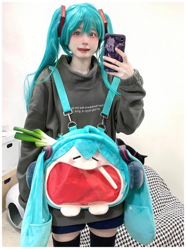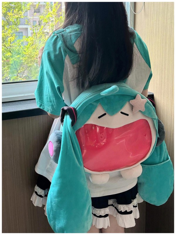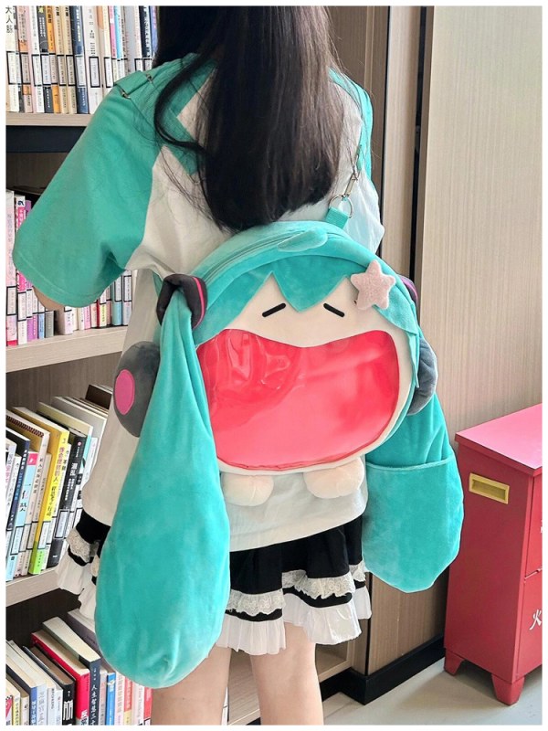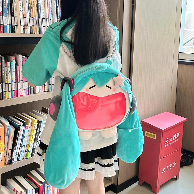 • 痛みバッグかわいい人形バッグ大容量ぬいぐるみシングルとダブルショルダーバッグミククロスボディバックパックスクールバッグ