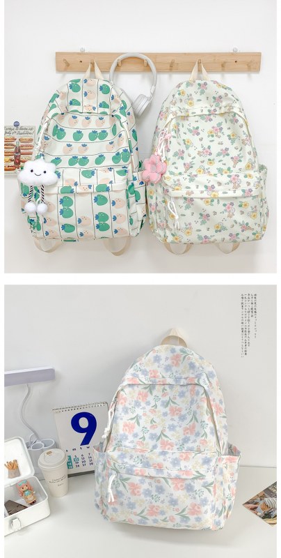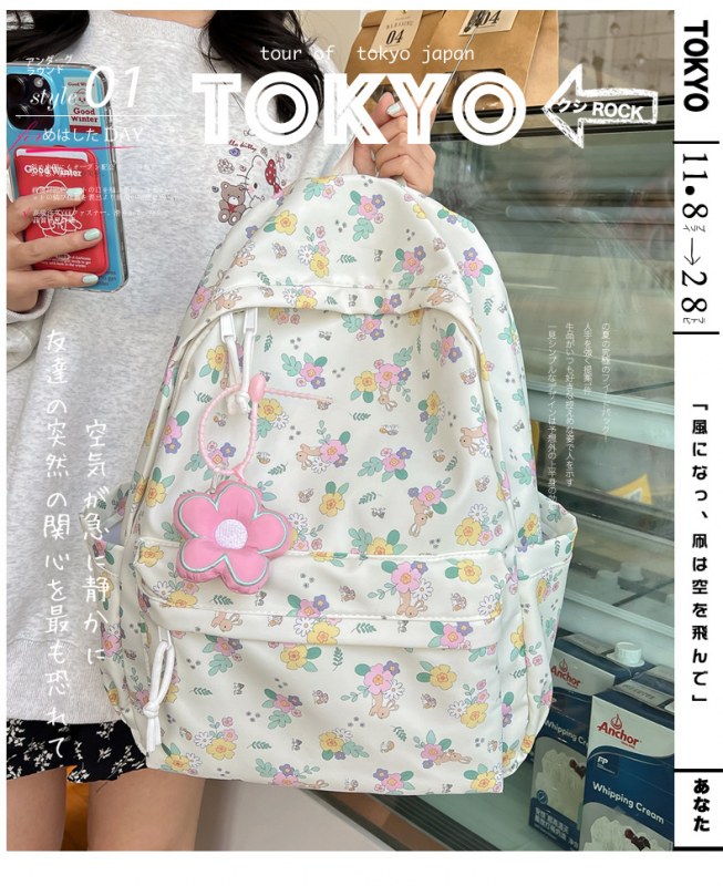 • 小花柄レトロランドセル女子中学生高校生大学生2024日本の新しいスタイルのバックパック