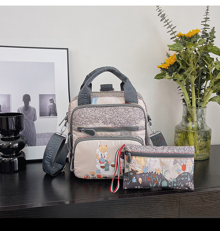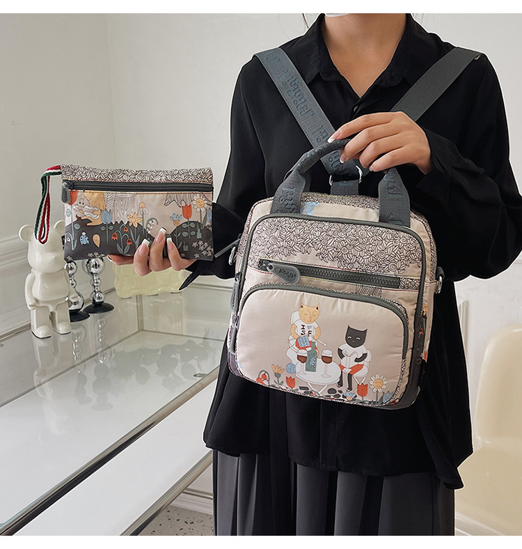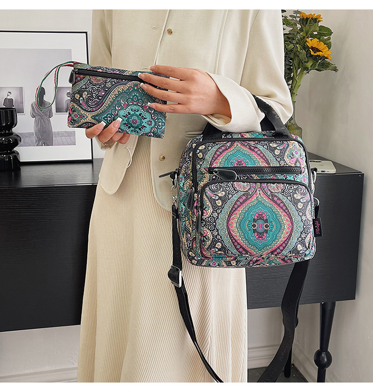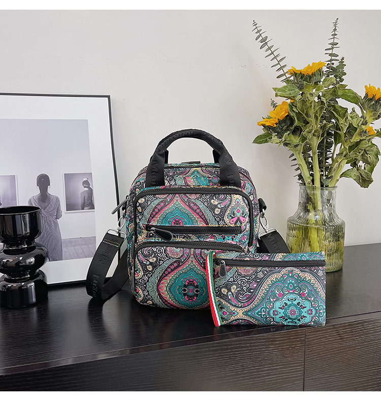 • 秋の新多目的バックパックエスニックスタイルプリントレディースバッグ大容量撥水トラベルバックパッククロスボディハンドバッグ