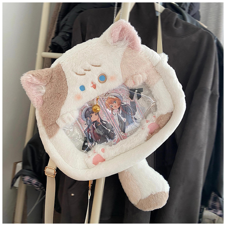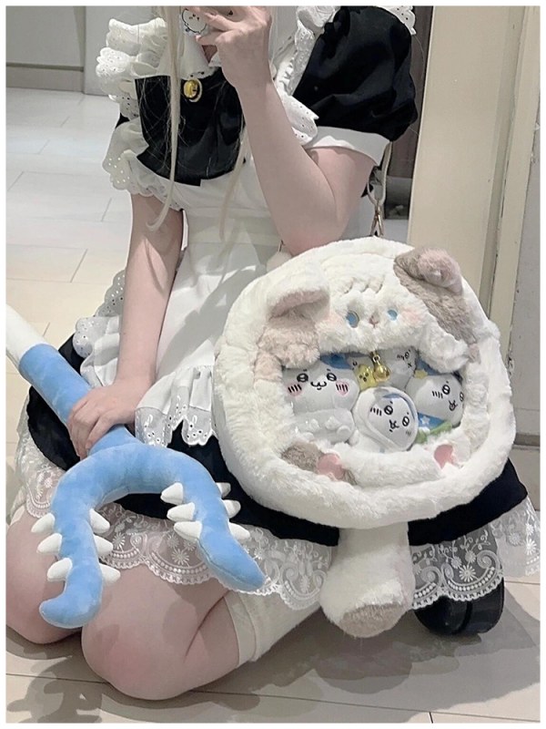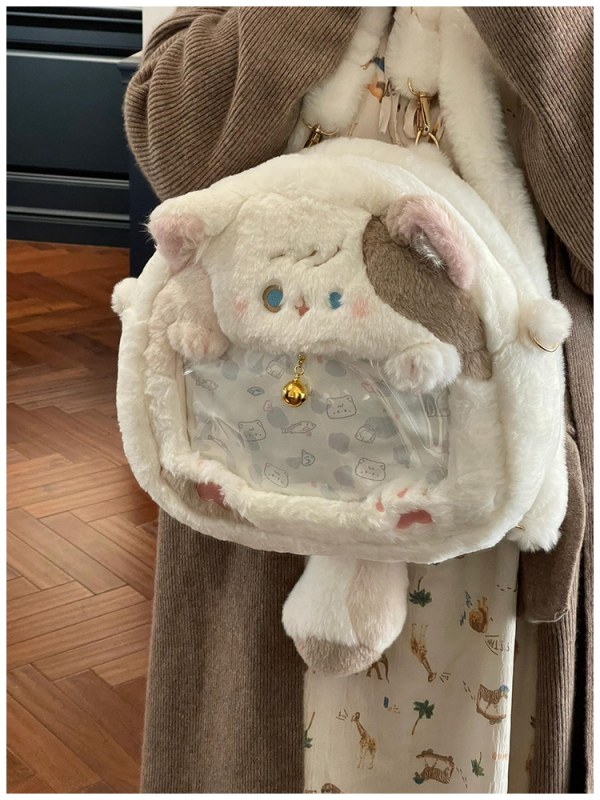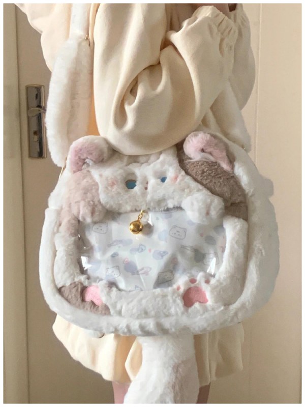 • かわいいぬいぐるみ子猫痛みバッグバックパック日本のjk甘い女の子二次元透明小さな食品キビバッグ