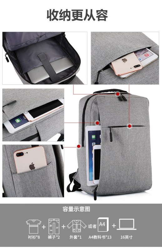 • バックパックメンズコンピュータバックパックビジネスカジュアルバックパックUSB充電スクールバッグ