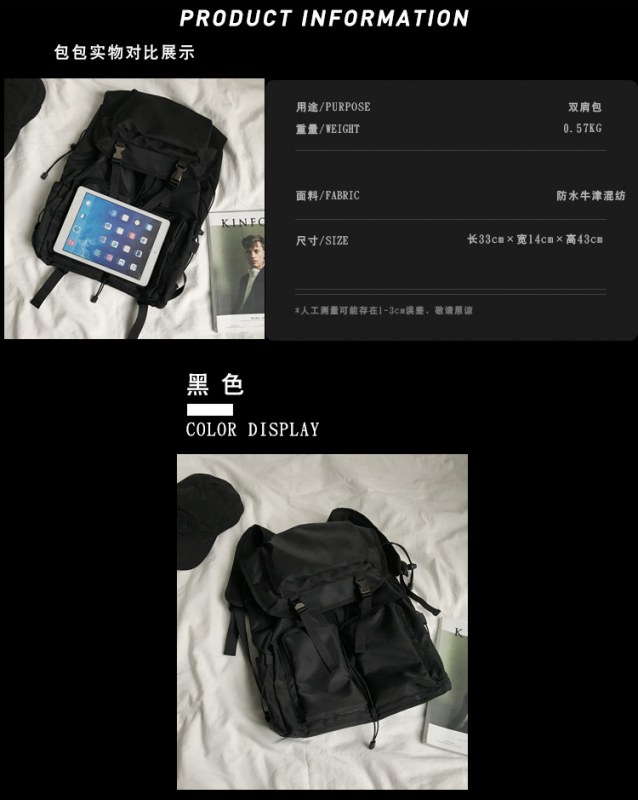 • 韓国イン作業服ダークスタイルのバックパック女性のための日本の原宿旅行バックパック男性のためのレトロな香港スタイルの学生スクールバッグ