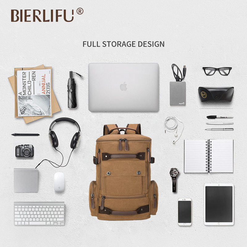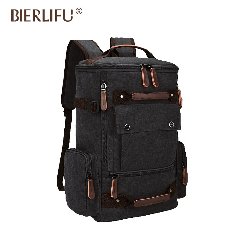• 新しい韓国スタイルの二次使用キャンバスバックパック登山旅行メンズバックパックポータブル層状多機能キャンバスバッグ
