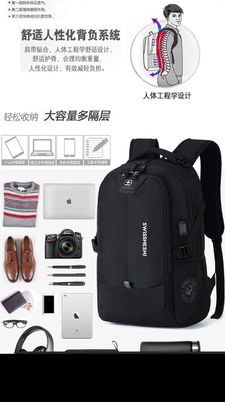 • ブラックバックパックメンズバックパックカジュアルビジネストラベル大容量学生スクールバッグメンズコンピュータバッグ