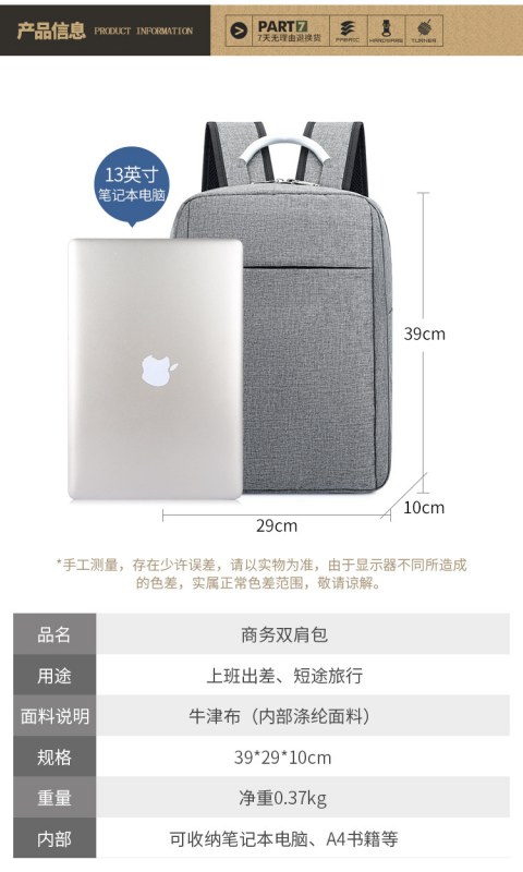 • コンピュータバッグ多機能コンピュータバッグメンズシンプルカジュアルバックパックUSB充電軽量カジュアル学生スクールバッグ