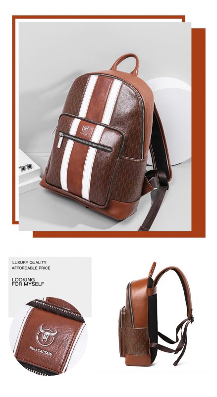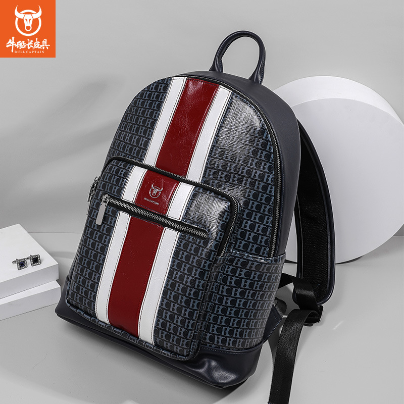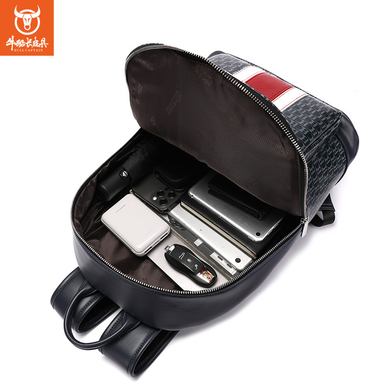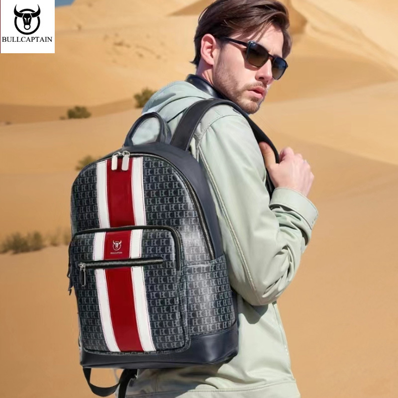 • キャプテンニウレザーバックパックメンズ本物のファッション短距離旅行バッグ撥水バックパック大容量コンピュータバッグ