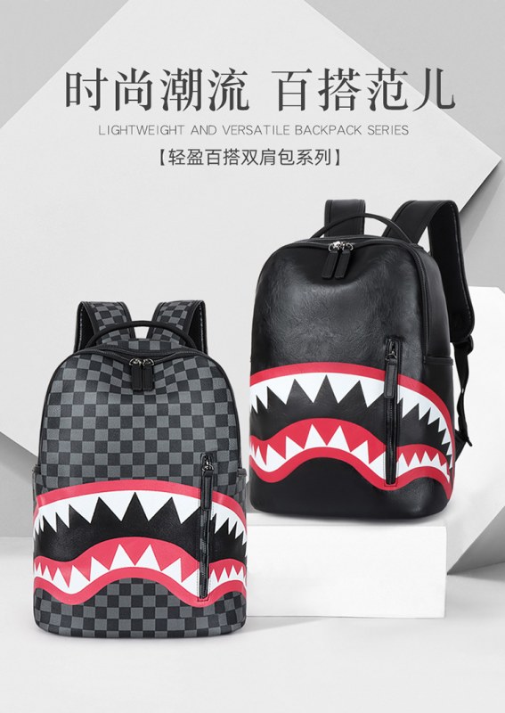 • メンズバックパックトラベルバッグファッションチェック柄バックパック学生スクールバッグ大容量ストリートトレンドサメバッグ