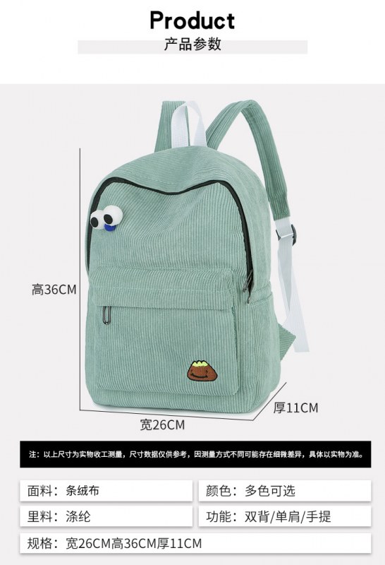 • 新しいスクールバッグ女子学生キャンパス小さな新鮮なバックパック中学生大学生かわいいレトロなコーデュロイバックパック