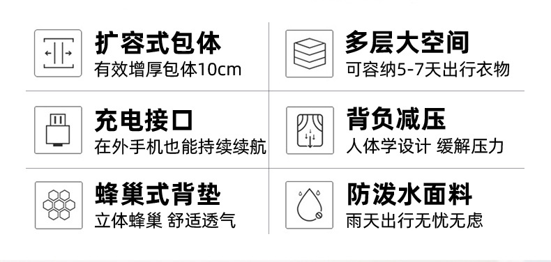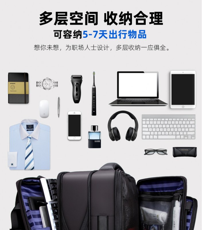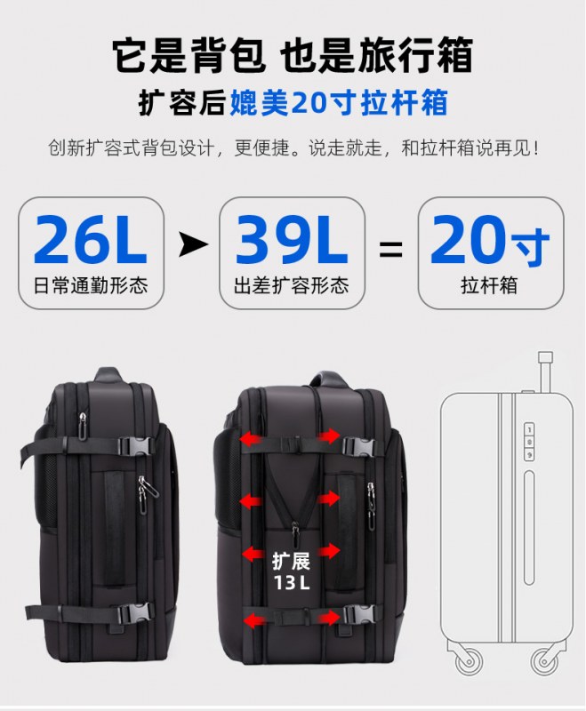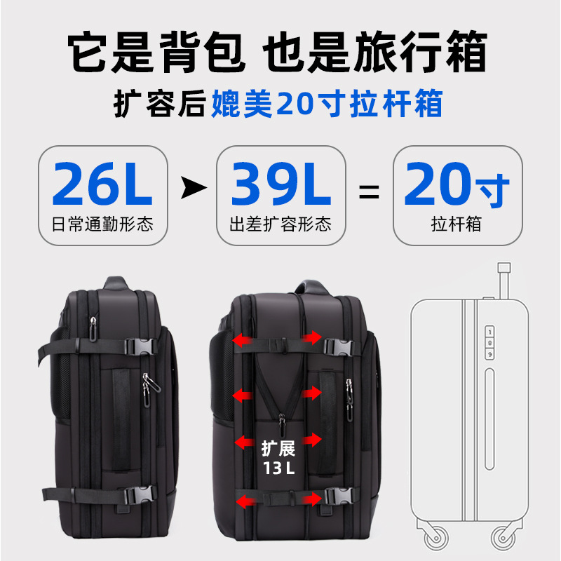 • 男性用大容量バックパック、拡張可能な旅行ビジネスコンピュータバッグ、ファッショナブルな多機能出張バックパック
